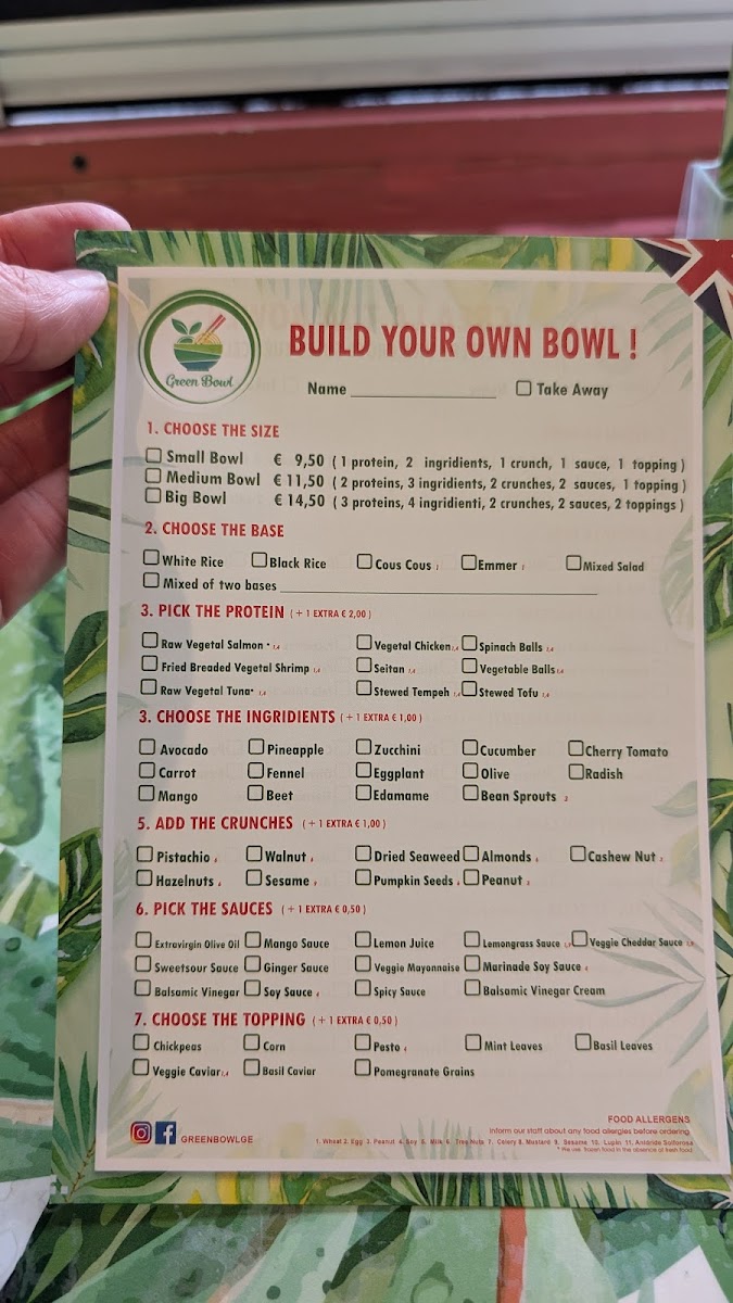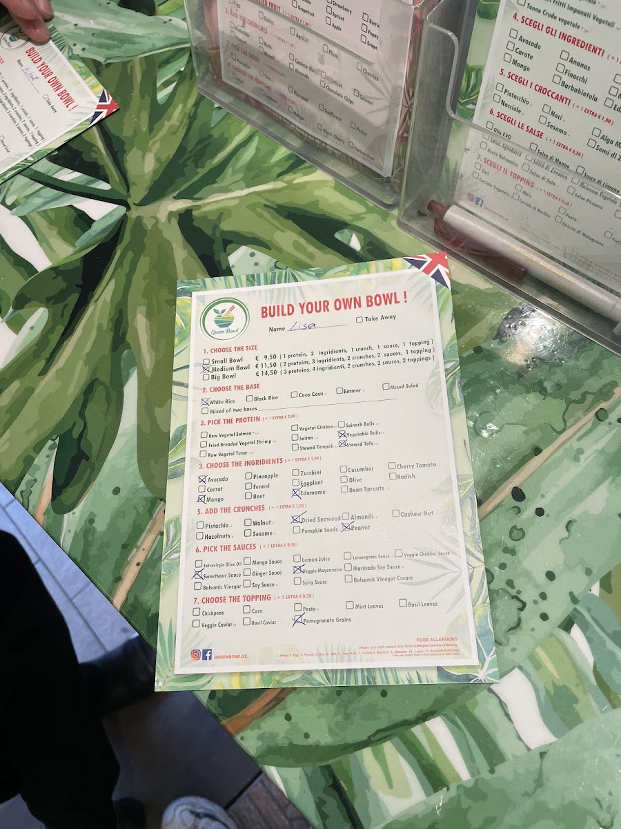 Green Bowl Menu